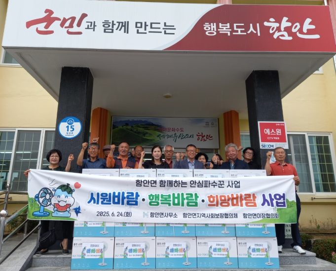 함안군 함안면(면장 손영자)은 24일, 여름철 무더위에 취약한 저소득층을 대상으로 ‘2025년 함께하는 안심파수꾼 - 바람, 바람, 바람(시원바람, 행복바람, 희망바람)’ 사업을 진행했다고 밝혔다.
