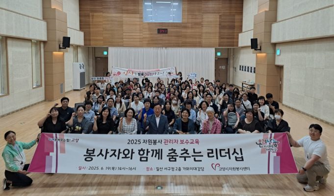 자원봉사 현장을 지휘하는 관리자들이 한 자리에 모여 ‘리더십’에 대해 다시 생각하는 뜻깊은 자리가 마련됐다. 고양시자원봉사센터(이사장 이동환)는 지난 19일, 일산서구청 가와지 대강당에서 **‘봉사자와 함께 춤추는 리더십’**을 주제로 활동처 관리자 보수교육을 성공적으로 마무리했다.