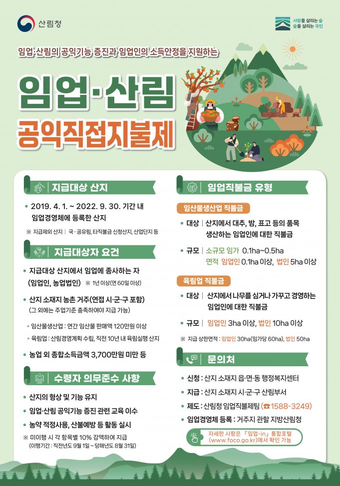임업직불제는 산림이 지닌 공익적 기능을 높이고 임업인의 소득 기반을 안정시키기 위한 제도다....