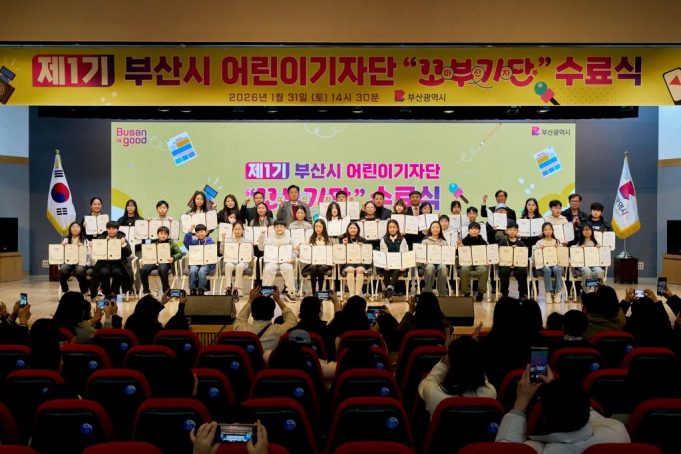 부산시가 지난 31일 오후 시청 대강당에서 제1기 부산시 어린이기자단 ‘꼬마부산기자단’ 수료식을 열고, 지난 1년 동안 부산 곳곳을 누비며 취재 활동을 펼친 어린이 기자들의 노고를 축하했다.