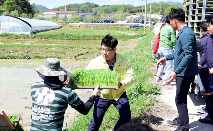 담양군의회 박준엽 부의장은 지난 26일 금성면 원천리 일원에서 열린 올해 첫 모내기 행사에 참여하여 직접 모판을 나르고, 이앙기로 논에 모를 심는 등 농가 일손을 도왔다.