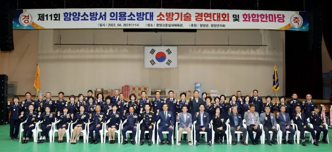 함양군민의 생명과 재산을 보호하는 소방기술을 겨루는 제11회 함양소방서 의용소방대 소방기술경연대회가 26일 오전 11시 고운체육관에서 의용소방대원 등 500여명이 참석한 가운데 성대히 열렸다.
