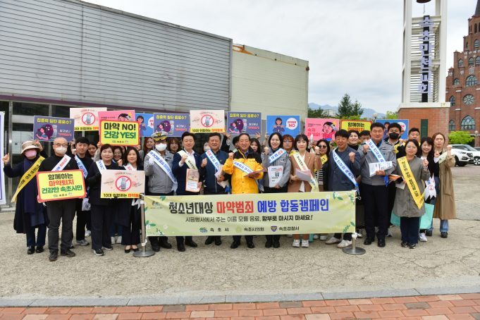속초시는 25일 오전 8시부터 학교·학원가 밀집지역인 속여고 인근과 속중 인근에서 시의회와 속초경찰서 등 유관기관 합동으로 ‘청소년 대상 마약범죄 예방 합동캠페인’을 실시하였다.