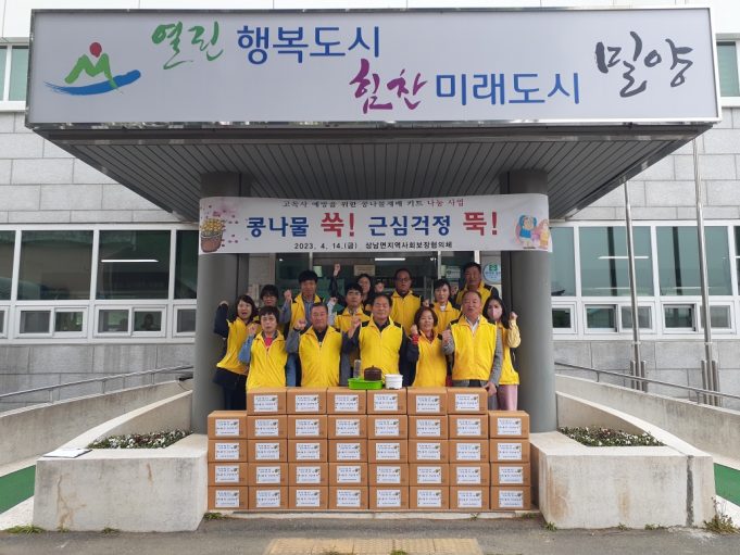 상남면 지역사회보장협의체(민간위원장 손희목, 공공위원장 장용찬 상남면장)는 14일 고독사 위험군 및 홀로 계신 어르신 52가구에 콩나물 재배 키트를 전달하고 안부를 확인하는‘콩나물 쑥! 근심걱정 뚝!’행사를 실시했다.
