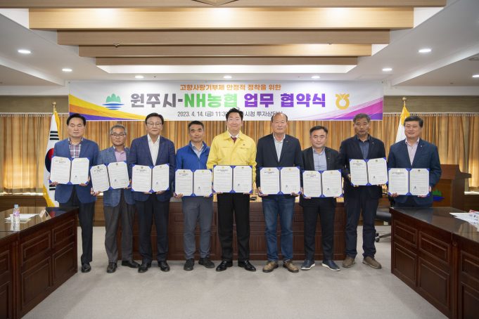 원주시와 NH농협(8개* 지역농축협)은 14일 시청 투자상담실에서 고향사랑기부제의 안정적인 정착을 위한 협약식을 개최했다.
