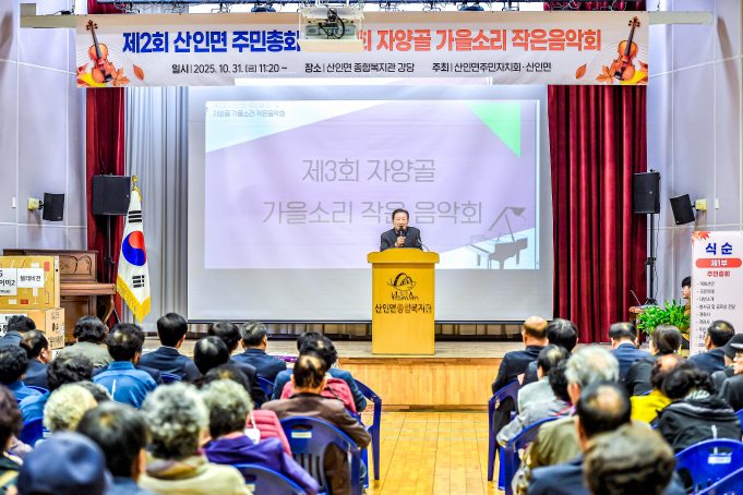 산인면주민자치회(회장 이상육)는 지난 31일 지역주민과 함께한 ‘제2회 주민총회 및 자양골 작은 음악회’에서 관내 저소득 세대에 성금 100만 원을 전달했다고 밝혔다.