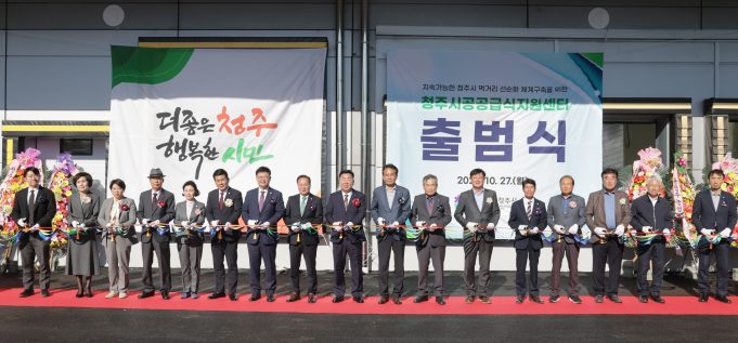 청주시가 지역 농산물을 활용한 건강한 학교급식과 공공급식 체계 구축을 위해 ‘청주시 공공급식지원센터’를 출범시키고 27일 현판식을 가졌다. 이날 출범식은 청주시 이범석 시장, 청주교육지원청 박종원 교육장, 오창농협 김영우 조합장 등 관계자...