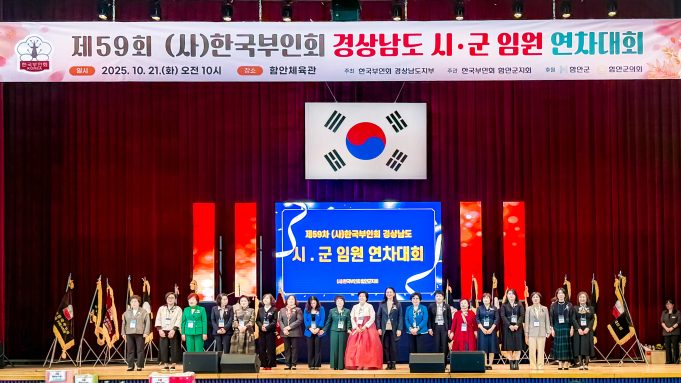 경남 함안군에 여성 리더들이 한자리에 모였다. (사)한국부인회 경상남도지부는 지난 21일 함안실내체육관에서 ‘제59차 경남 시·군 임원 연차대회’를 성황리에 개최했다. 이번 행사는 한국부인회 함안군지회(지회장 김순이)가 주관했다.