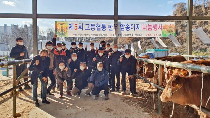 함양군은 17일 오전 함양가축시장에서 소규모 한우 사육농가 우량 한우 개량을 위한 ‘고등혈통 우량 한우 나눔 행사’를 실시하였다.