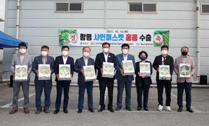 전남 함평군의 지역특화작목인 ‘함평 샤인머스켓’이 홍콩으로의 첫 수출길에 올랐다.