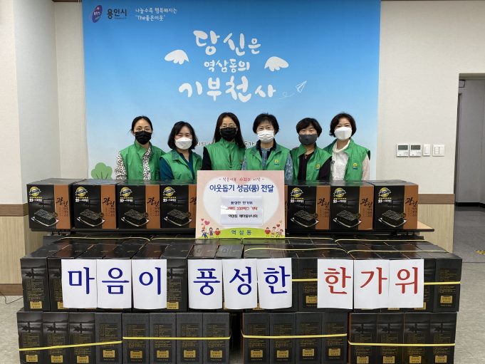 용인시 처인구 역삼동은 1일 새마을부녀회가 추석을 앞두고 어려운 이웃을 위해 써 달라며 김 선물세트 100개를 기탁했다고 밝혔다.