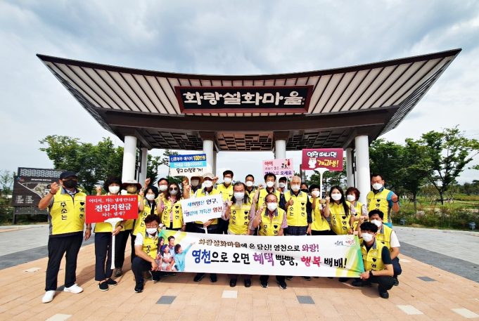 영천시(시장 최기문) 관광진흥과는 휴가철을 맞이해 지난 13일 화랑설화마을에서 영천시의 주요 시책인 ‘11만 영천인구 달성’을 위한 인구 늘리기 캠페인을 추진했다.