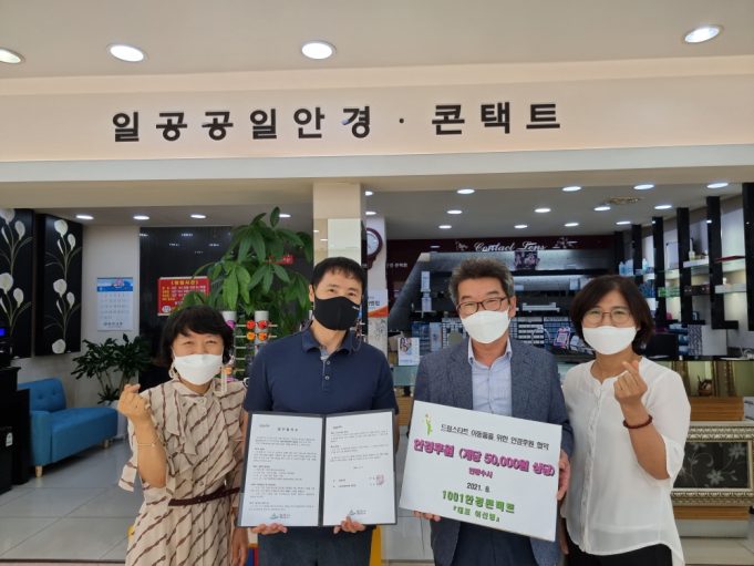 서독안경원, 다비치안경원, 이노티안경원은 2013년 밀양시 드림스타트 설립 이래로 안경후원 협약을 맺어 드림스타트 대상아동 안경후원을 해주고 있으며, 이에 ‘1001안경콘텍트 밀양점’도 동참하겠다는 뜻을 밝혔다.