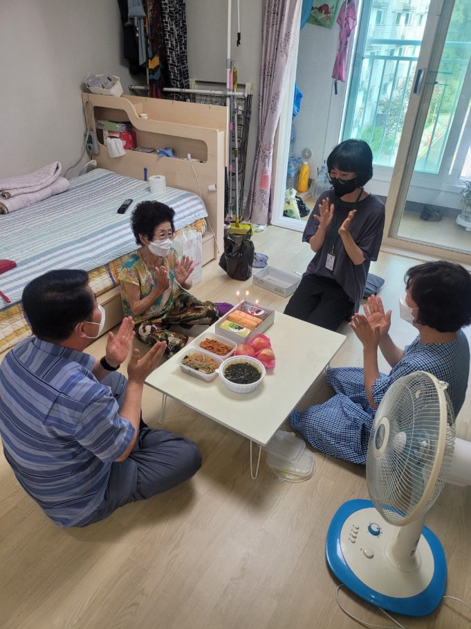 이번 행사는 코로나19 예방 방역수칙에 따라 진행됐으며, 정성껏 끓인 미역국과 잡채, 케이크, 과일 등 정성스럽게 준비한 음식들로 생신상을 차려...