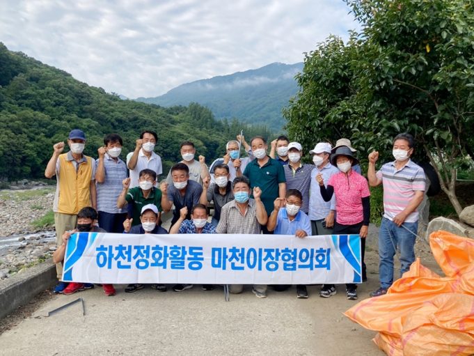 함양군 마천면이장협의회(회장 박윤섭) 이장 20여명은 휴가철을 맞은 8월 11일 지역 내 하천정화 봉사활동을 펼쳤다.