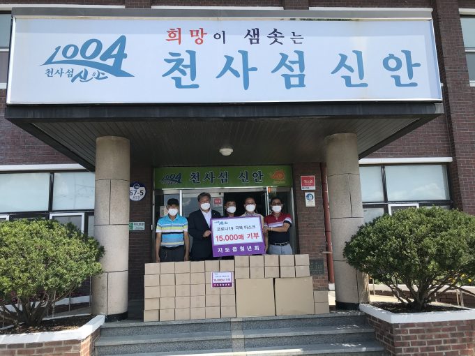 8월 10일 지도읍 청년회 강형석 회장과 회원들이 지도읍사무소를 찾아와 휴가철 다중이 방문하는 위생업소 근무자에게 배부 하자며 마스크 15,000매를 기부하였다.