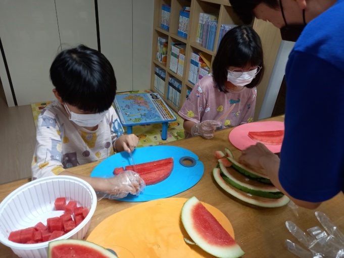 이번 봉사는 영천시자원봉사센터에서 준비한 삼계탕, 수박화채 조리 키트를 도담도담...