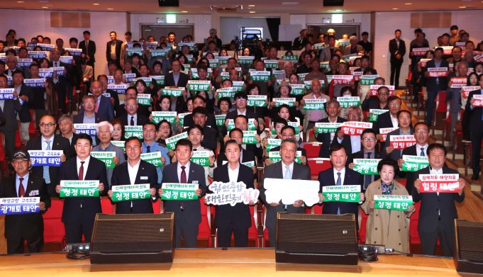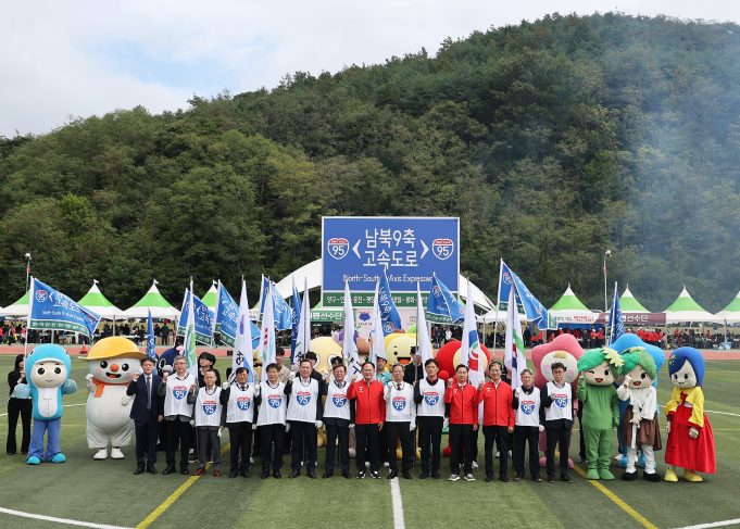 남북9축고속도로 추진협의회는 15일 영양 공설운동장에서 열린 제55회 영양군민 체육대회와 연계해 강원·경북 10개 시·군이 참여하는 ‘남북9축고속도로 조기건설 기원’ 연합 퍼포먼스를 진행했다.