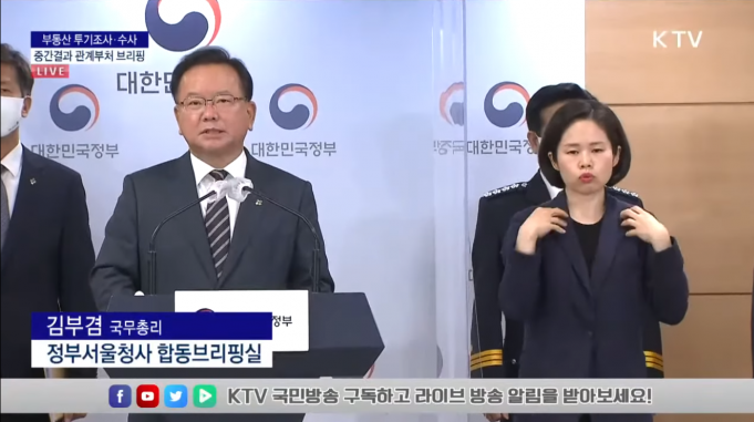 김부겸 국무총리는 2일 오후 정부서울청사에서 브리핑을 열고 이 같은 내용의 부동산 투기 조사·수사 중간결과를 발표했다.