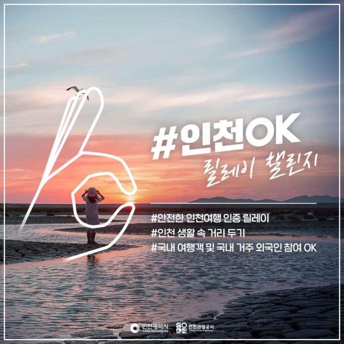 인천광역시(시장 박남춘)와 인천관광공사(사장 민민홍)는 코로나19시대 국내 여행 수요증가와 더불어 여름철 인천여행을 계획하는 관광객들에게 안심하고 여행할 수 있도록 안전한 관광도시 인천을 알리고 지역경제를 활성화하고자 ‘인천 안전여행 OK릴레이 챌린지’ 캠페인을 실시한다고 밝혔다.