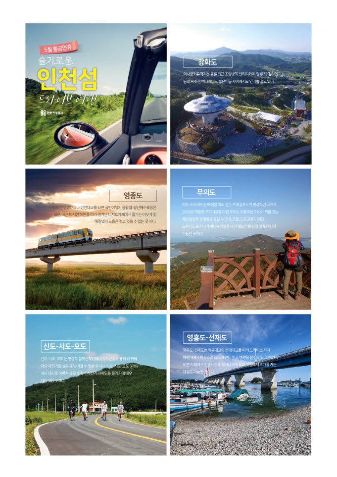인천관광공사(사장 민민홍)는 코로나19 상황 속 사회적 거리두기를 준수하며, 파릇파릇한 봄기운을 느낄 수 있는 야외에서 지친 몸과 마음을 달랠 수 있는 한적하고 청정한 인천섬 드라이브 여행지 5선을 발표했다.