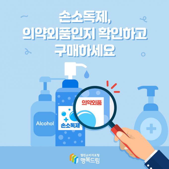 최근 코로나19 감염 예방을 위해 개인 위생이 강조되면서 손소독제의 수요가 늘고 있으나, 인체에 사용할 수 없는 살균·소독제품을 손소독제처럼 표시해 판매한 사례가 확인돼 소비자의 각별한 주의가 요구된다.