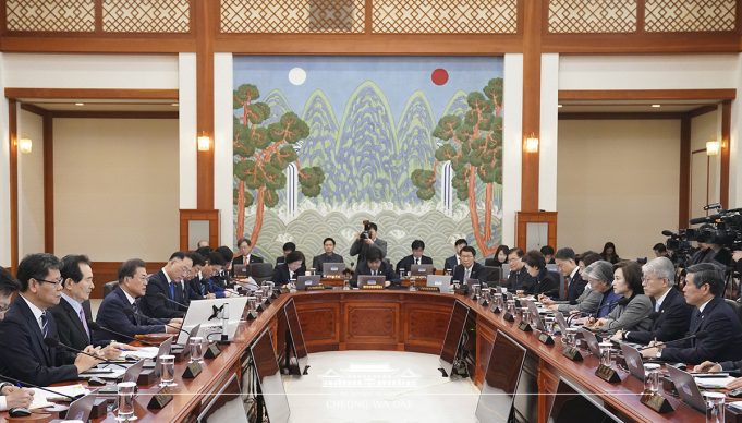 정부는 18일 문재인 대통령 주재로 국무회의를 열고 ‘긴급방역 대응 조치’와 ‘우한 교민 임시시설 운영 지원’을 위한 목적예비비 지출안을 심의·의결했다.