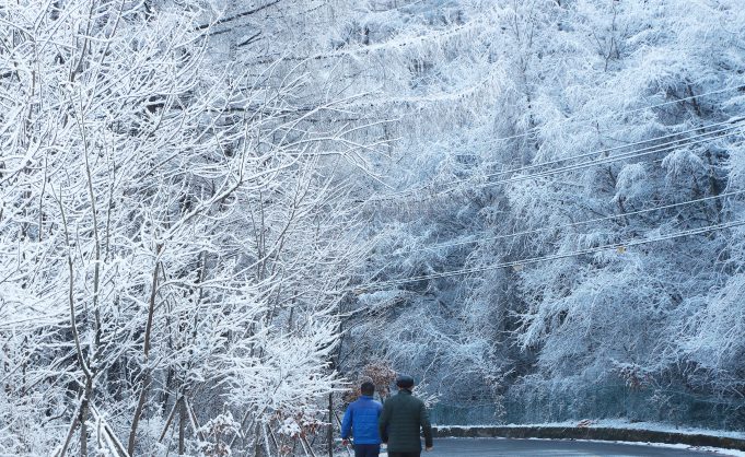 30일 오전 경남 함양군 서하면 백운산이 새벽에 내린 함박눈으로 하얗게 변해 있다.