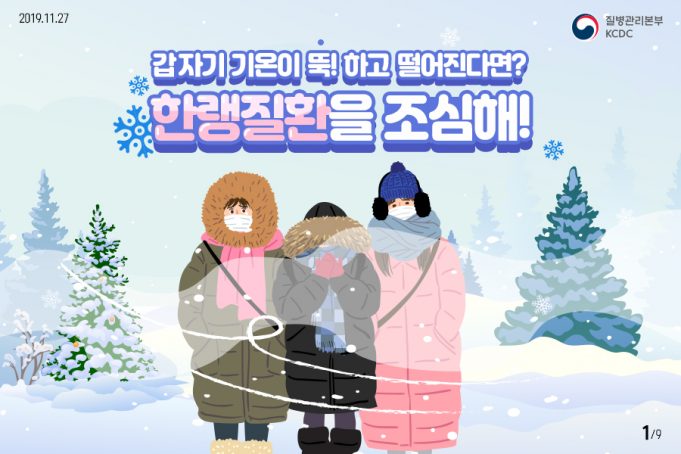 질병관리본부(본부장 정은경)는 오늘 전국 대부분의 아침 기온이 어제에 이어 영하권으로 떨어지고, 일부 지역은 한파 주의보 · 특보가 예상됨에 따라 한랭질환 예방에 주의를 당부했다.