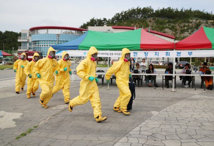 태안군이 유관기관과 함께 생물 테러 대응 훈련에 나섰다.