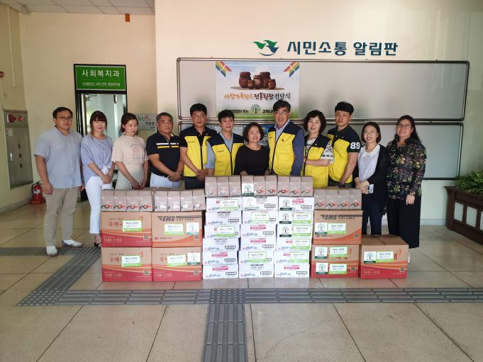 전통 된장 1kg 100개(200만원), 라면 20박스(20만원 상당) 전달