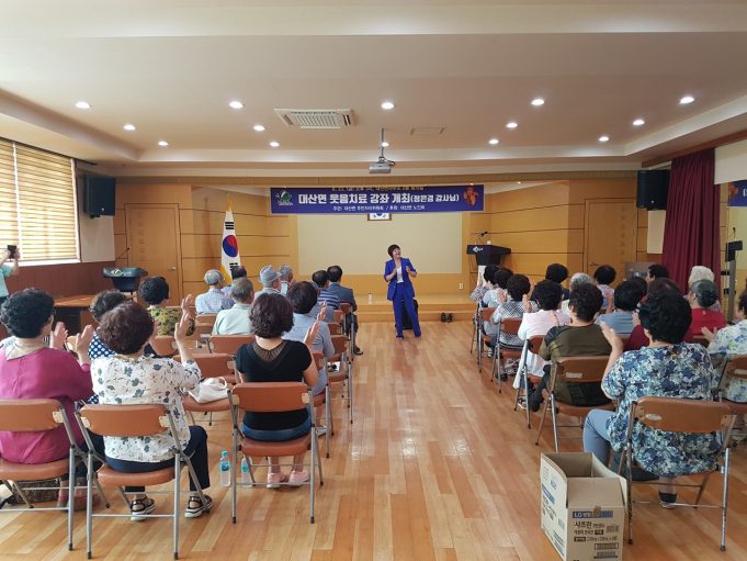 함안군 대산면 주민자치위원회(위원장 전갑진)는 지난 23일 오후 3시 면사무소 2층 회의실에서 대산면민 100여명이 참석한 가운데 면민들의 스트레스를 해소시키고 활력을 증진시키고자 ‘웃음치료’ 강의를 실시했다.