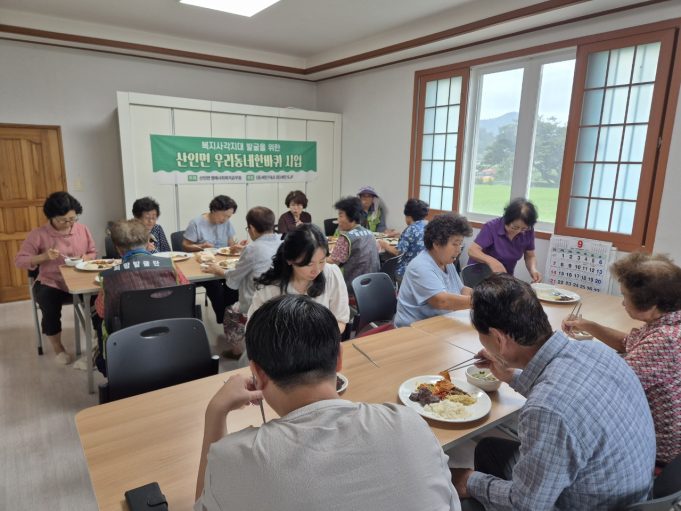 산인면이 복지사각지대 해소를 위한 마을 중심의 나눔 활동에 나섰다. 지난 9일 운곡경로당에서 열린 ‘우리동네 한바퀴 사업’에는 명예사회복지공무원들이 함께해 취약계층 어르신들에게 따뜻한 점심을 대접했다.