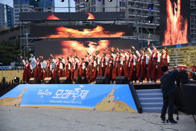 지난 25일 해운대에서 모래 축제 미니 콘서트가 열려 관광객들로 인산인해를 이뤘다.
