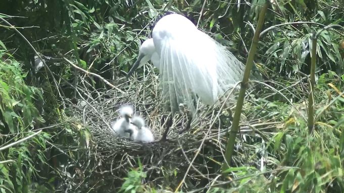 울산시(송철호 시장)는 태화강철새공원 철새관찰 CCTV에 중백로 둥지에서 새끼 세 마리가 부화하는 장면이 포착됐다고 발표했다.