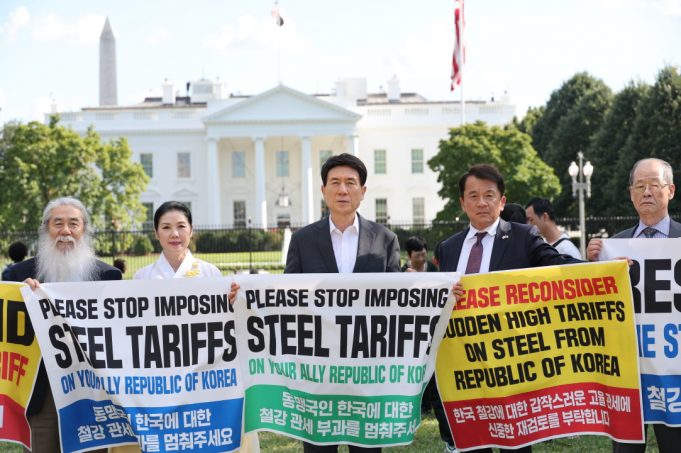 백악관 앞 ‘철강 관세 인하 촉구’ 캠페인…“포항 생존, 국가경제의 문제”