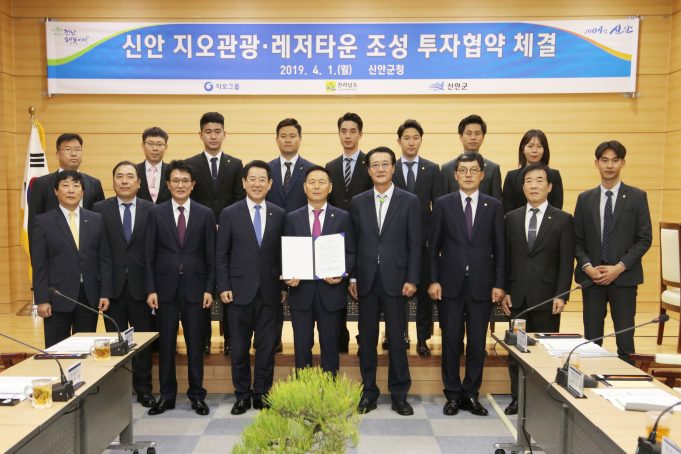 지난 4월 1일 신안군청에서 최일기 지오그룹회장과 김영록 전라남도지사, 박우량 신안군수가 참석한 가운데 2,200억원 규모의 투자협약을 체결했다.