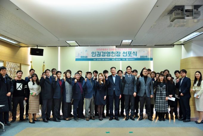 인천관광공사(사장 민민홍, 이하 공사)는 모든 경영활동에서 임직원이 준수해야 할 행동규범 및 가치판단 기준으로서 인권경영헌장을 제정하고 지난달 26일 공사 대회의실에서 선포식을 가졌다.
