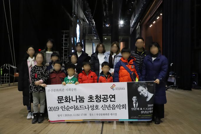 (재)부산문화회관(대표이사 이용관)은 지난 12일 「2019 인순이&드니성호 신년음악회」 에 부산진구 및 부산동구 다문화가족지원센터의 도움으로 다문화가정 20여분을 초청하는 문화나눔 활동을 실시했다. 이번 문화나눔 공연 초대는 지역 내 다문화가족지원센터 및 부산광역시 사회공헌정보센터와의 협력을 통해 평소 공연장 방문이 어려웠던 다문화가정을 초청하여...