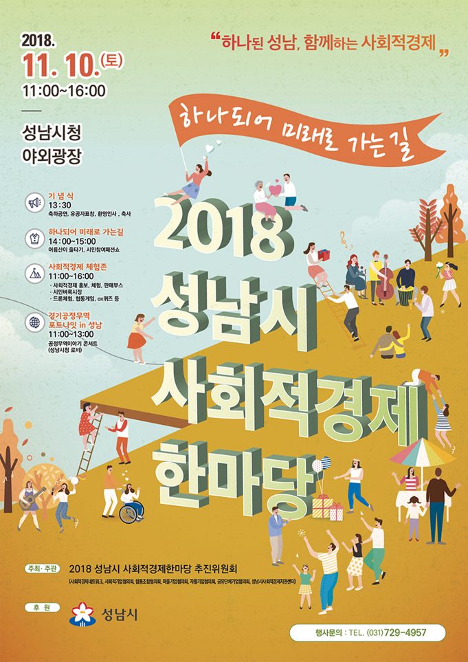 성남시는 ‘2018 사회적경제 한마당’ 행사를 오는 11월 10일 오전 11시에서 오후 4시 시청 광장에서 연다고 밝혔다.