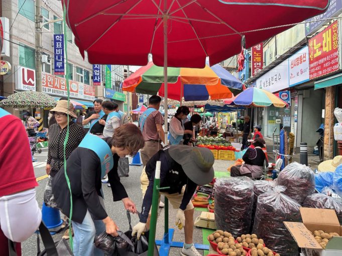 안동시 송하동(동장 류향임) 민간단체 회원 50여 명이 8월 12일 중앙신시장 일원에서 ‘왔니껴 안동 오일장’ 장보기 행사를 열어 지역 전통시장 활성화와 농민 소득 증대에 힘을 보탰다.