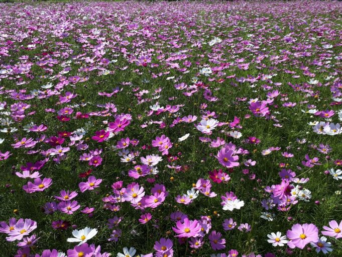 대전시가 대전천 우안 하상도로변에 조성한 코스모스단지의 꽃들이 만개해 지나가는 시민들의 이목을 끌고 있다.