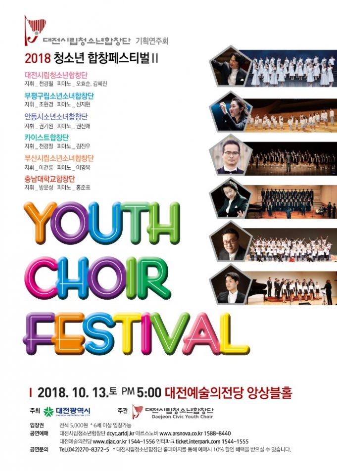 대전시립청소년합창단은 10월 13일(토) 오후 5시 대전예술의전당 앙상블홀에서 합창 꿈나무들의 끼와 재능을 선보이는 ‘2018 청소년합창페스티벌Ⅱ’를 개최한다고 밝혔다.