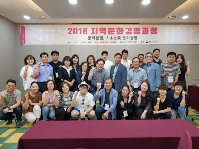 한국문화원연합회(회장 김태웅)는 지난 7월 17일부터 20일까지 부산관광공사에서 운영하는 아르피나에서 지방문화원 직원들을 대상으로 2018 지역문화경영과정 교육을 실시했다.