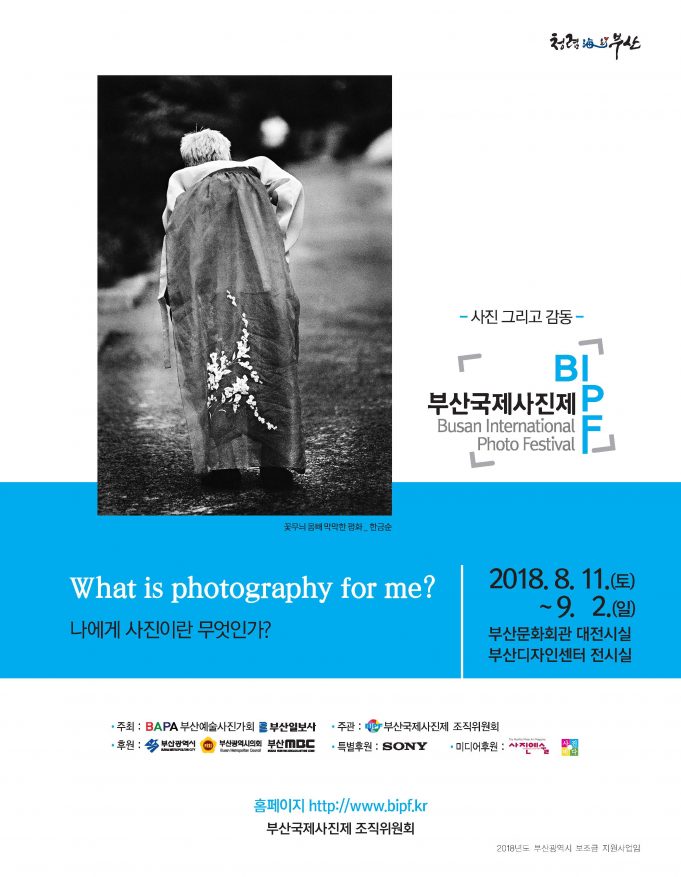 ‘2018 부산국제사진제’가 오는 11일부터 9월 2일까지 부산문화회관 대전시실과 부산디자인센터에서 개최된다. 부산국제사진제는 부산예술사진가회와 부산일보사 공동주최로 국내 일반 사진제와 차별화된 전시회가 개최될 예정이다.