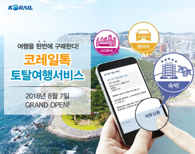 ‘코레일톡 토탈 여행서비스’는 스마트폰 앱 ‘코레일톡’에서 열차 승차권과 함께 도착지역의 렌터카, 시티투어, 숙박 등 여행 콘텐츠를 한 번에 예약할 수 있는 서비스다.