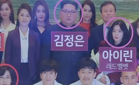 남측 예술단의 평양공연 기념사진에서 북한 김정은 노동당 위원장이 레드벨벳 아이린 옆에 선 것을 두고 ‘의도된 자리 선정’이었다는 주장이 나왔다. 김 위원장은 부인 리설주 여사와 아이린 사이에...