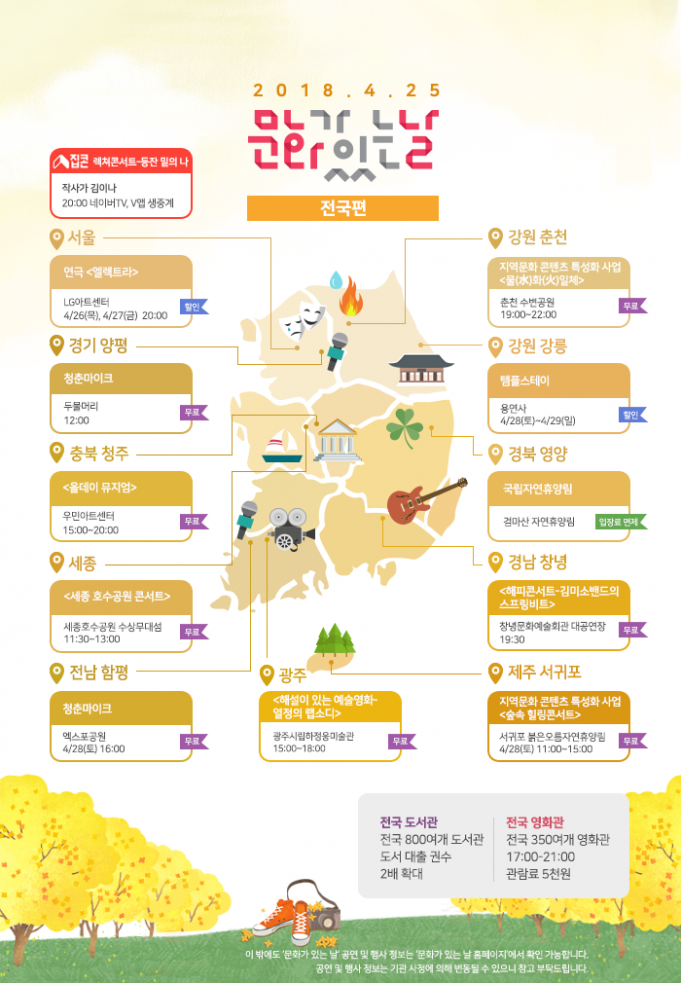 매달 마지막 수요일은 일상에서 문화를 더욱 쉽게 접할 수 있도록 문화체육관광부(장관 도종환, 이하 문체부)가 지정한 ‘문화가 있는 날’이다.