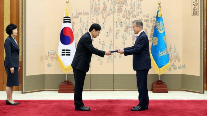 문재인 대통령은 9일 청와대 본관 접견실에서 이주열 신임 한국은행 총재에게 임명장을 수여했다.