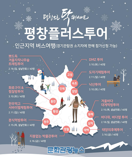 문화체육관광부(장관 도종환, 이하 문체부)는 한국관광공사, 강원도와 함께 2월 9일부터 3월 18일까지 '평창 여행의 달'을 맞이해 평창 동계올림픽·패럴림픽 대회를 관람하고자 강원도를 방문할 국민들을 위한 다양한 연계 관광 프로그램을 마련한다.